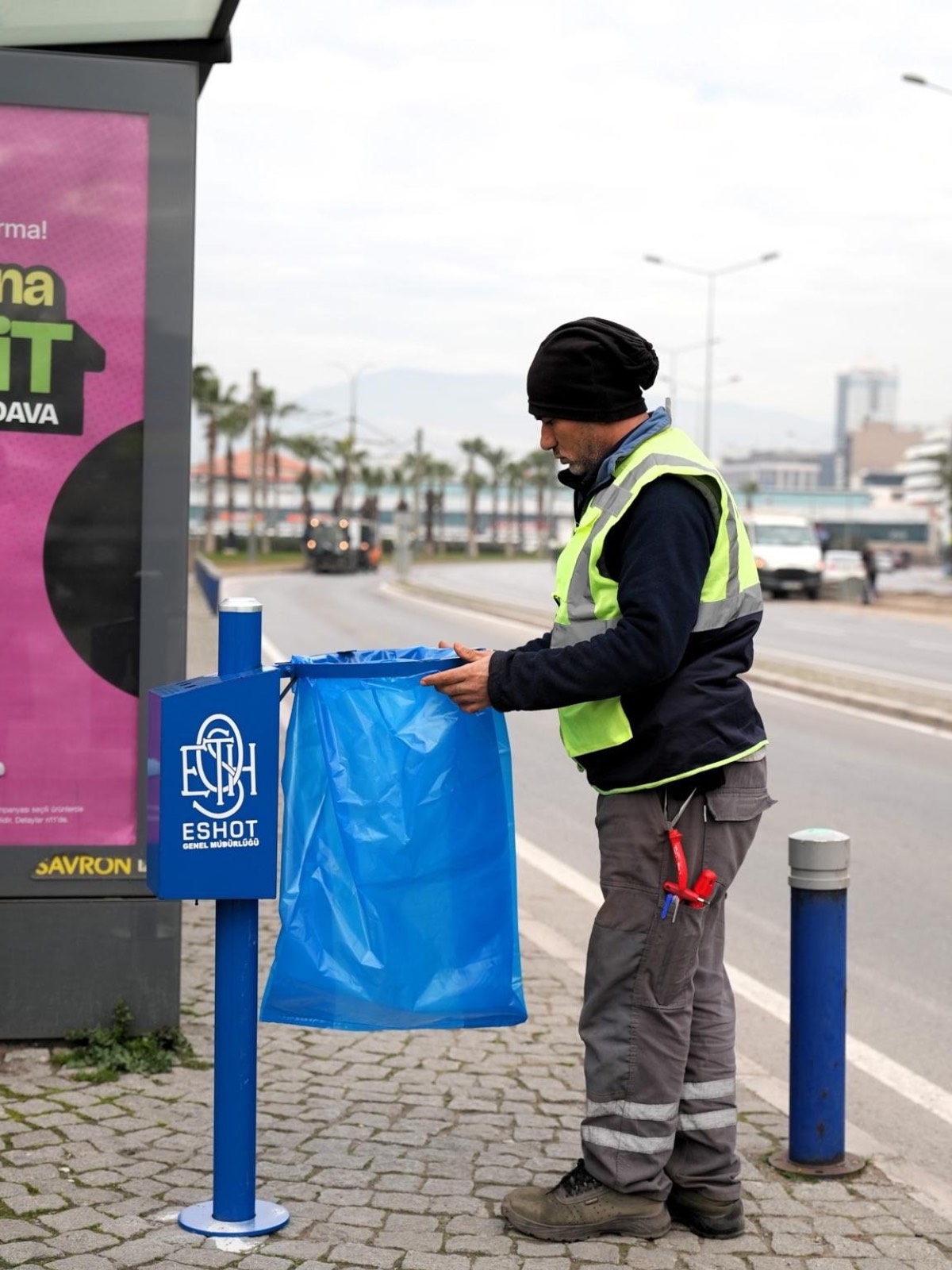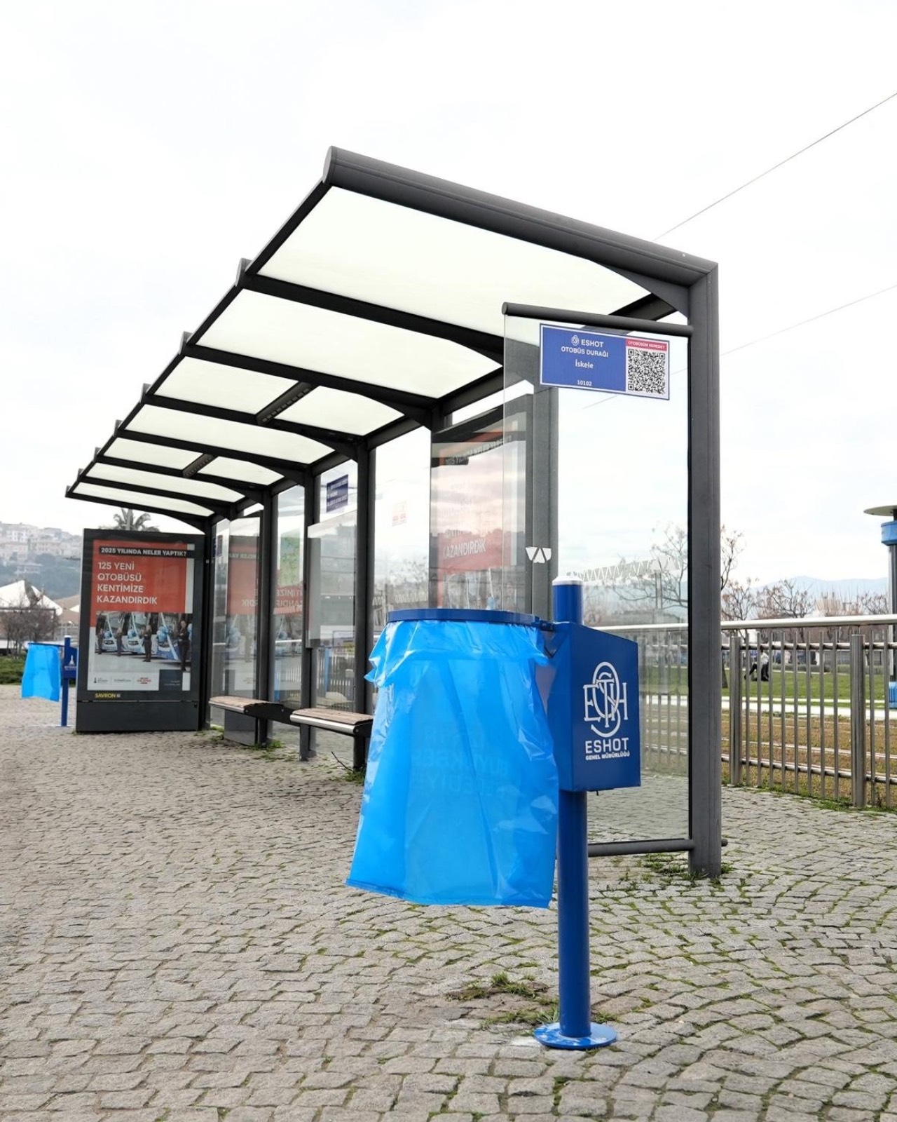 ESHOT Genel Müdürlüğü tarafından otobüs duraklarında kullanılacak yeni çöp kovalarının tasarımı tamamlandı, montaj çalışmalarına başlandı. Kentlilerin en yoğun kullandığı alanlardan biri olan otobüs duraklarında daha düzenli, temiz ve estetik bir ortam oluşturmayı amaçlayan çalışma kapsamında, İzmir genelinde 3 bin 150 adet çöp kovasının üretimi ve montajı planlanıyor. Pratik kullanım ve kolay bakım esas alınarak tasarlanan pota tipi çöp kovalarında, çöp poşetleri rahatlıkla değiştirilebiliyor. Çöp kovalarında sigara izmaritleri için ayrı bir bölüm, diğer atıklar için ise ayrı bir alan bulunuyor. Mavi-beyaz renklerde tasarlanan çöp kovaları, ESHOT’un nazar boncuklu otobüsleriyle görsel bir bütünlük oluşturuyor. Böylece durak çevrelerinde hem işlevsel hem de kent kimliğiyle uyumlu bir görünüm hedefleniyor.