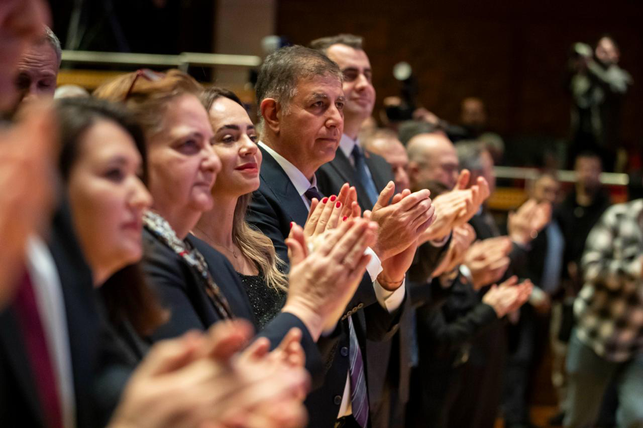 Görev süreci içerisinde en gurur duyduğu günlerden birini yaşadığını belirten İzmir Büyükşehir Belediye Başkanı Cemil Tugay konuşmalarında, “2 yılı 2 gün geçtik. Yerel seçimler gerçekleşti. Bizleri hem onurlandırdınız hem de çok önemli görevler verdiniz. Çok inanarak, gücünüzden cesaret alara yola çıktık. Zorluklarla mücadele ettik soru işaretlerini gidermek için yoğun bir çaba gerçekleştirdik. 28 ilçe ve büyükşehirle, tüm Ege bölgesinde gurur duyduğumuz bir başarı elde ettik. Zorluklar içerisinde yerel yönetimler olarak kendi bölgelerimizde çaba gösteriyoruz ve halkımız aslında ne kadar iyi niyetle çaba gösterdiğimizi ve zorluklar çıkarılmaya çalıştığımızı biliyor. İçimizdeki en büyük mücadeleyi siz veriyorsunuz Genel Başkanım. CHP’ye ve CHP’li siyasetçilere yönelik her türlü saldırının üzerinde kalkan oluyorsunuz. Gururlandıran önderliğiniz yapıyorsunuz. İzmirde görev verdiğiniz tüm arkadaşlarımız ve kendi adıma size çok teşekkür ediyorum. Sizin bize inancınızla göreve geldik. Ne şart altında olursa olsun çok çaba gösteriyoruz. Halkımızla barışık olduğumuzu biz hissediyoruz. 4.5 milyonluk sehirde elbette sorunlar olacaktır ama herkes bilir ki CHP’li belediye başkanları kendilerini halkın üstünde, dışında tuta insanlar değil. Her zaman onların yanında, onlarla beraber bir kaderi paylaşmak için bu göreve geldik. Bu saldırılar altında görev yapmak bize ekstra bir görev yüklüyor. Çok büyük sorunların olduğu bu dönemde parti olarak sizin önderliğinizde, buradan çıkacağız. Biz de duruşumuzla her zaman yanınızda yer alacağız” ifadelerini kullandı.
