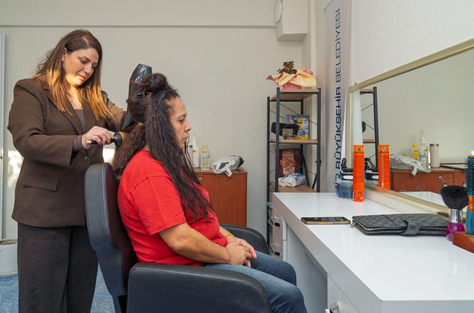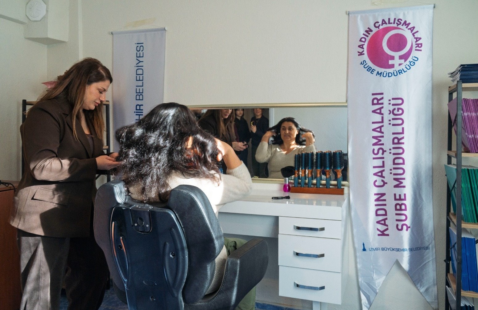 İzmir Büyükşehir Belediyesi, ücretsiz Güçlenme Durağı Mobil Kuaförlük Hizmetini, Bayraklı Onur Mahallesi’nden başlattı. Kadınlar hem saç kesimi ve fön hizmeti aldı hem de sağlık, yasal haklar, kadın hakları ve toplumsal cinsiyet eşitliği eğitimlerine katıldı. Proje muhtarlıklarla iş birliği halinde her hafta farklı bir mahallede yapılacak