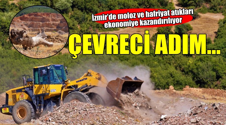İzmir Büyükşehir Belediyesi tarafından kurulan moloz ve hafriyat atığı geri dönüşüm tesisleri sayesinde hem çevresel kirliliğin hem de görüntü kirliliğinin önüne geçilirken atıklar da ekonomiye kazandırılıyor. Özellikle ormanlık alanları tehdit eden kaçak hafriyat, inşaat yıkıntı atığı dökümüne karşı önlemler alan ve hafriyat sahalarının sayısını artıran İzmir Büyükşehir Belediyesi, bu sahaların içinde kurduğu tesislerde hafriyat atığı ve molozları geri dönüştürerek kentin yol altı dolgu ihtiyacını malzemelerden karşılıyor. Atık malzemeler parke, bordür üretiminde kullanılıyor. Hafriyat dolum sahası olarak kullanılan doğal yapısı bozulmuş eski taş ocakları depolama kapasitesini doldurduktan sonra ağaçlandırılıyor.
