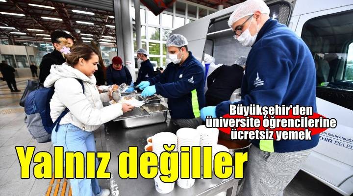İzmir Büyükşehir Belediyesi’nin üniversite öğrencilerine sunduğu ücretsiz sıcak yemek uygulaması devam ediyor. Büyükşehir Belediyesi bünyesindeki aşevinde üretilen sağlıklı ve lezzetli yemekler, Ege Üniversitesi içi metro durağı, Katip Çelebi Üniversite içi kız yurdu yakını, Bakırçay Üniversitesi içi, Demokrasi Üniversitesi önü, İzmir Yüksek Teknoloji Enstitüsü (İ.Y.T.E.) içi kütüphane önü, Dokuz Eylül Üniversitesi Tarık Akan Gençlik Merkezi önünde bulunan 6 noktadan üniversite öğrencilerine ulaştırılıyor.