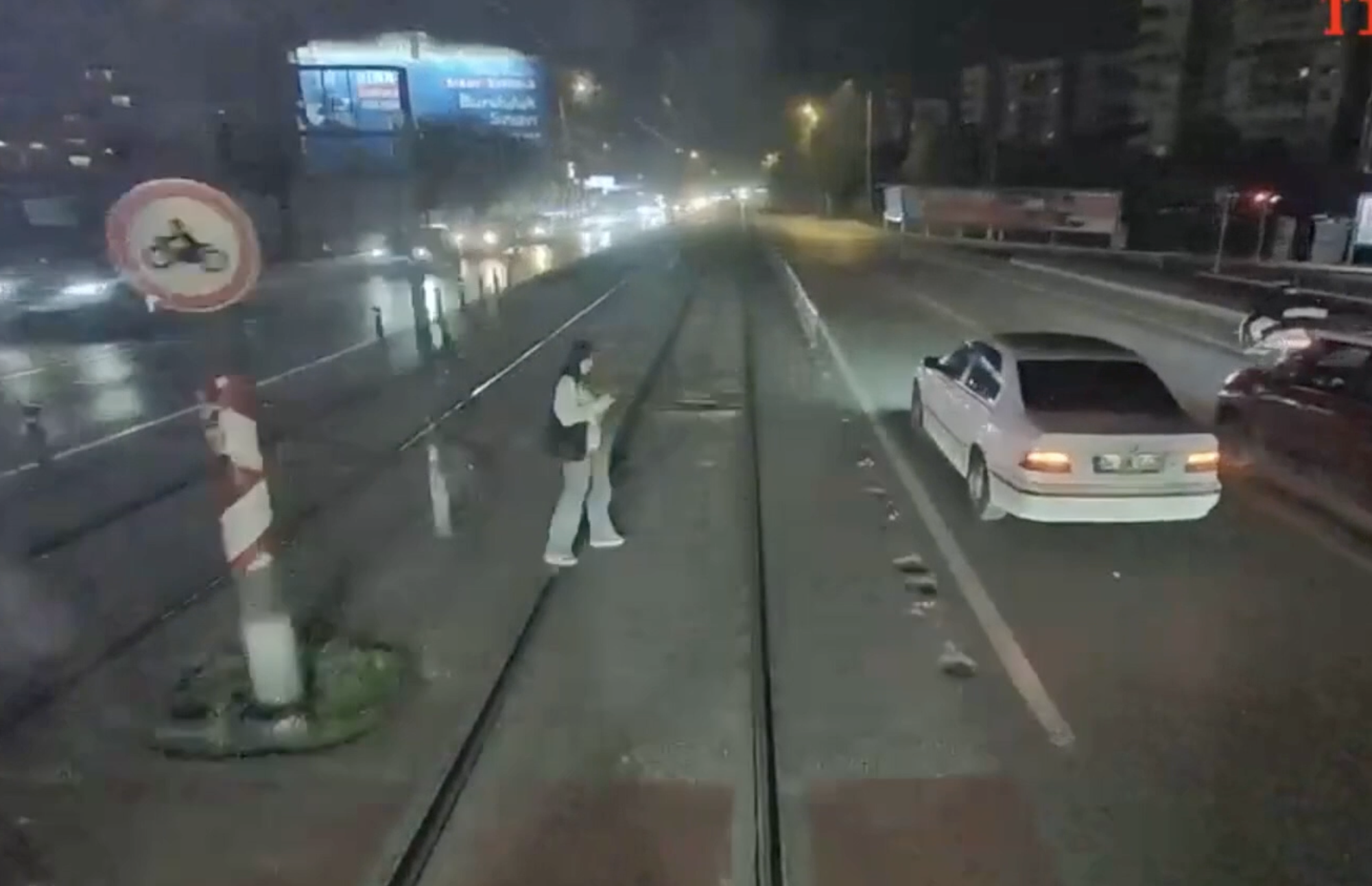 Kaza, tramvayın kamerasınca kaydedildi.