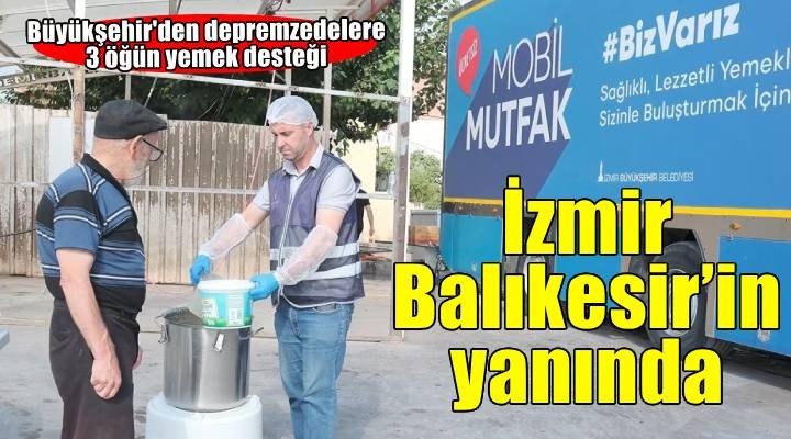 İzmir Büyükşehir Belediyesi tarafından Balıkesir’deki 6.1 büyüklüğündeki depremin ardından başlatılan yardım hareketi sürdürülüyor. Sındırgı merkez ve mahallelerinde evleri hasar gören yurttaşların yanında olan İzmir Büyükşehir Belediyesi ekipleri, depremzedelere yemek desteği veriyor.