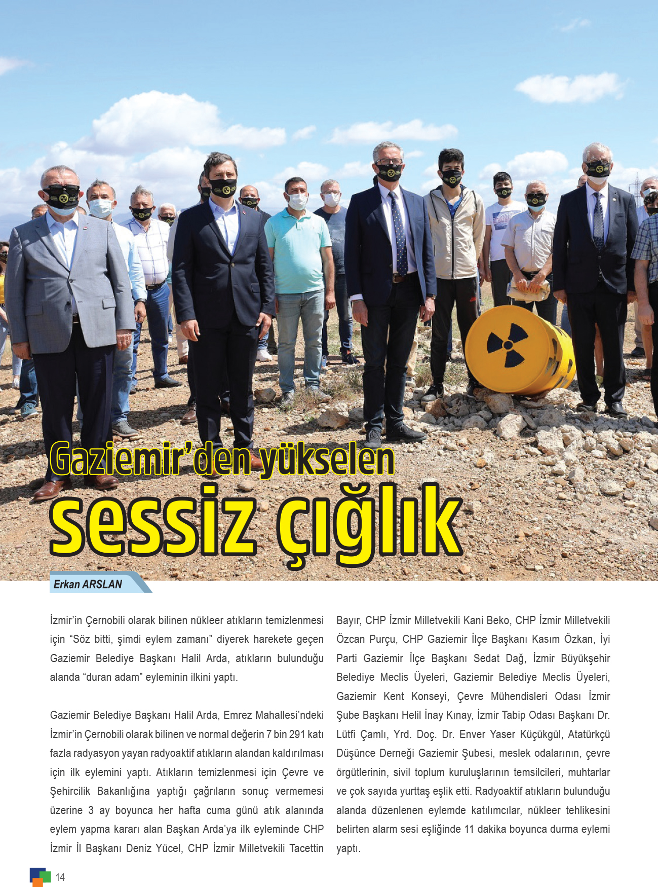 Pusula Gaziemir’in ikinci sayısının kapağında, Gaziemir’in Emrez Mahallesi’nde toprağa gömülen ve normal değerin 7 bin 219 katı radyasyon yayan nükleer atıklar konusuna yer verildi. Gaziemir Belediye Başkanı Halil Arda’nın nükleer atıkların kaldırılması için başlattığı duran adam eylemine de yer verilen dergide, nükleer konusu dünyadaki örnekleriyle birlikte enine boyuna işlendi. Derginin çevre sayfalarında iklim değişikliği ve kuraklık konusu na da yer verildi.