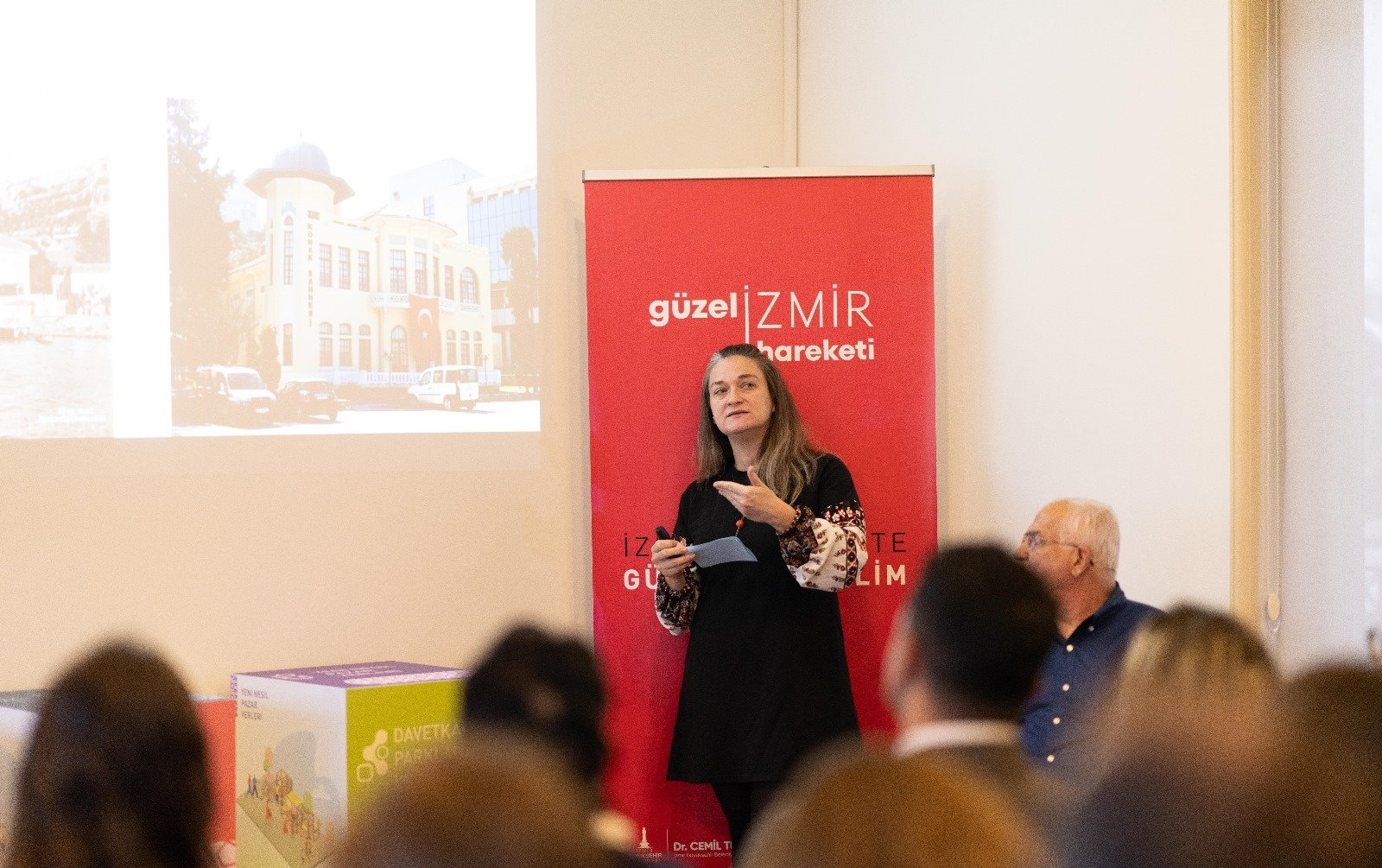 Güzel İzmir Hareketi Koordinatörü yüksek mimar Esra Yılmaz Keskin, “Şato’da Canlanan Kamusallık” başlığı altında sunum gerçekleştirdi. Güzel İzmir Hareketi hakkında bilgilendirmede bulunan Keskin, Şato binasının teraslar, e-kütüphane ve İzmirli Kahve faaliyetleriyle dönüştüğünü belirterek sosyal yaşama ilişkin bir değişim yaratıldığını aktardı. Teraslarda yoga ile tango etkinlikleri yapıldığını ve sağlıkla ilgili eğitimlerin verildiğini belirten Keskin, “Kapalı alanda Güzel İzmir Hareketi kapsamında atölyeler gerçekleştirdik. Güvenli okul çevreleri temamız kapsamında bunu yapmıştık. Ayrıca anne ve çocuklarla park için katılımcılık esaslı atölye de düzenledik. Çok yakında farklı etkinliklerimizde olacak. Amacımız Şato’nun kapalı ve açık alanlarının canlandırılması ve kullanılmasıdır. Burada etkinliklerin artırılmasını çok önemsiyoruz. Oluşturduğumuz kafe hakkında hem gençler hem de mahalleliden olumlu dönüşler alıyoruz” diye konuştu.