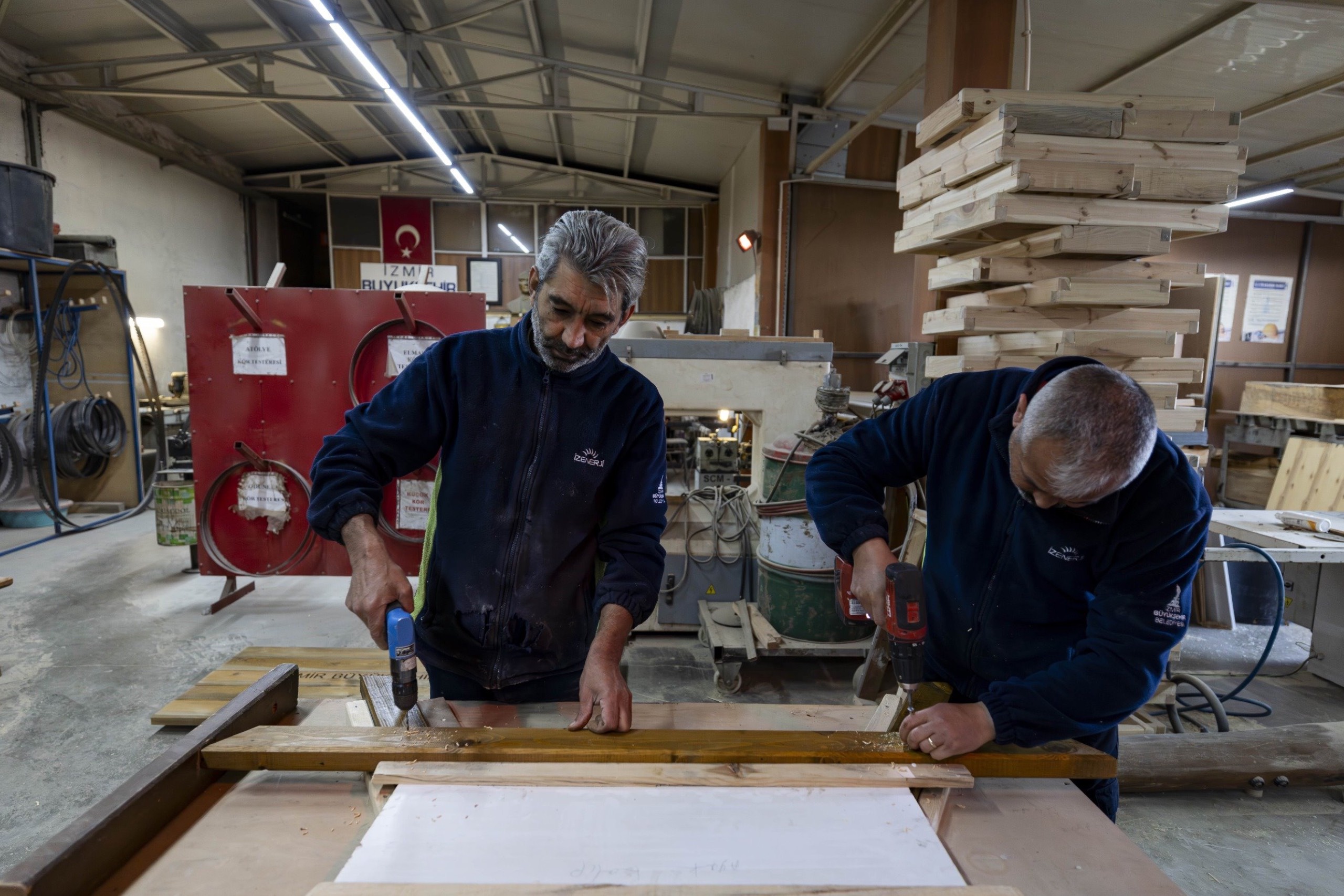 Çalışmalar hakkında bilgi veren Fırat Atölye Şefi Mete Kalaç, “Şu an atölyemizde İzmir genelinde kullanılan bank, çöp kovası, piknik masası, oturma grupları, oyun grupları, kondisyon grupları gibi ekipmanları üretiyoruz. Yeni tasarımlarımızda, kendi atölyemizde imal ettiğimiz küllüklü çöp potalarımız var. Tamamen dönüşümden sağladığımız, çevrede budama yapılırken bize gelen tomruklardan bank ve piknik masası üretimlerimiz bulunuyor. Bostanlı bölgesinde uygulamasına başlayacağımız mısır tezgâhlarımız var. Onların üretimini de kendi personelimizle, atölyemizde yapıyoruz” diye konuştu.