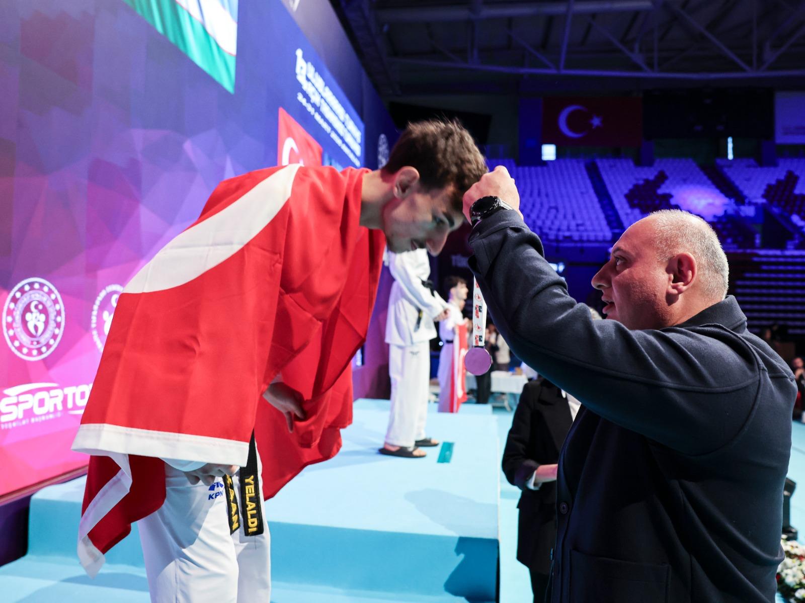 İzmir Büyükşehir Belediyesi Spor Kulübü’nün başarılı tekvandocuları 13. Uluslararası Türkiye Açık Taekwondo Turnuvası’nda iki gümüş ve bir bronz madalya kazandı. Antalya Spor Salonu’nda gerçekleştirilen ve 67 ülkeden 2 bin 552 sporcunun katıldığı organizasyonda 54 kiloda tatamiye çıkan İzmir Büyükşehir Belediye Spor Kulübü sporcusu Kaan Yelaldı, Büyük Erkekler kategorisinde 48 ülkeden 342 sporcu arasında mücadele etti.