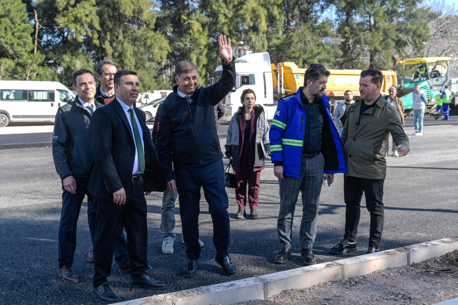 İzmir Büyükşehir Belediye Başkanı Dr. Cemil Tugay’ın İzmirlilere sözünü verdiği yol yenileme çalışmaları kapsamında yürütülen asfalt seferberliği kent genelinde tüm hızıyla devam ediyor. Yol Yapım Bakım ve Onarım Dairesi Başkanlığı koordinesinde İZBETON ekipleri tarafından ana arterler başta olmak üzere yenileme çalışmaları dört koldan gerçekleştiriliyor. İzmir Büyükşehir Belediye Başkanı Dr. Cemil Tugay, ekiplerin sahada gece gündüz yürüttüğü çalışmaları yerinde inceledi. İlk olarak hastanelerin yoğun olduğu Gaziler Caddesi’ndeki asfalt serimini inceleyen Başkan Tugay, Gaziler Caddesi ile Gıda Çarşısı girişinde yer alan 1201 sokak kesişimindeki alanın otoparka dönüştürülmesi için gerçekleştirilecek çalışmalar hakkında ilgi aldı . Yoğun trafik akışının olduğu bölgede parklanma sorununu çözmek için 154 araçlık otopark yapılacak.