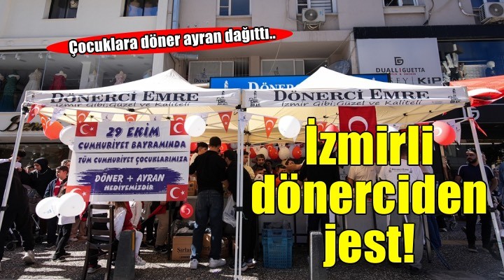 Halit Ziya Bulvarı'nda faaliyet gösteren dönerci, bayram dolayısıyla her yıl yaptığı gibi balon ve bayraklarla süslediği iş yerinin önüne tezgah kurarak çocuklara ikramda bulundu.