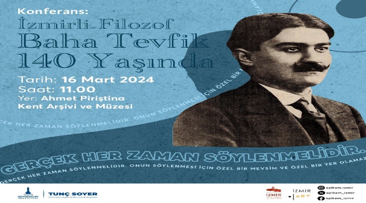 İzmir Büyükşehir Belediyesi Kent Arşivi, Müzeler ve Kütüphaneler Müdürlüğü felsefeci, çevirmen, yazar, gazeteci ve siyasetçi Baha Tevfik’i 140. doğum gününde “İzmirli Filozof Baha Tevfik 140 Yaşında Konferansı” ile anacak. Ahmet Piriştina Kent Arşivi ve Müzesi’nde 16 Mart Cumartesi günü saat 11.00’de başlayacak konferansta Baha Tevfik’in hayatı, eserleri ve felsefesi, farklı disiplinlerden on üç bilim insanı tarafından ele alınacak. 16.00’ya kadar sürecek konferans “Felsefe-Materyalizm-Mecmua”, “Etik-Duygu-Evrim” ve “Kadın-Edebiyat-Tenkit” olmak üzere üç oturumda yapılacak.