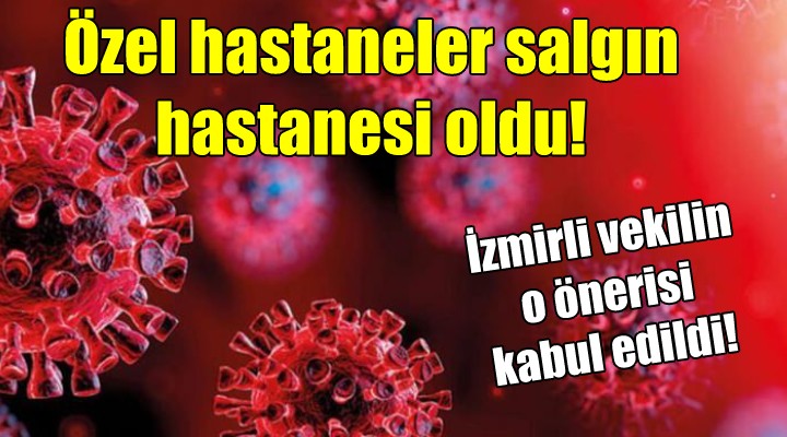 Böylelikle, devlet hastanelerinin yanı sıra bu hastaneler de virüsle ilgili işlemler için kullanılabilecek. Özel ve vakıf hastanelerinin koronavirüsle ilgili kullanılması gerektiği önerisi İYİ Parti Genel Başkan Yardımcısı ve İzmir Milletvekili Aytun Çıray tarafından gündeme getirilmişti. Çıray, "ÖZEL SAĞLIK KURULUŞLARININ TAMAMI SAĞLIK BAKANLIĞI EMRİNDE SALGIN İLE MÜCADELE MERKEZLERİNE DÖNÜŞTÜRÜLMELİDİR. S.B'lığı tüm özel hastanelere temsilci mücadeleye hazır hale getirmeli. Böylece büyük bir insangücü salgınla mücadelede görevlendirilmiş olacaktır" demişti.