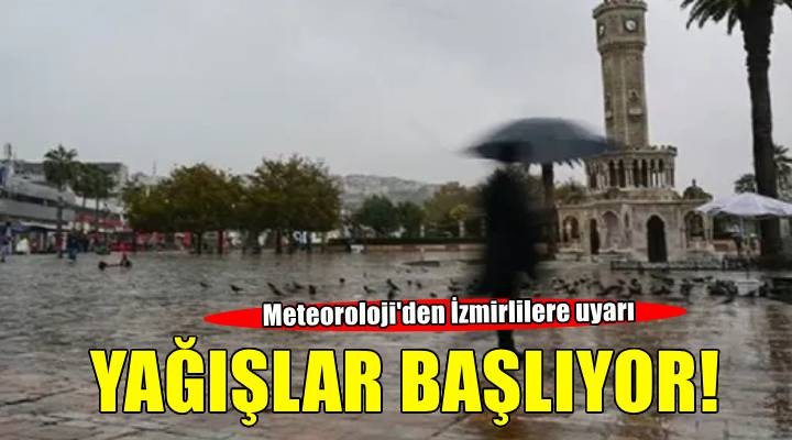 SONAKALEİZMİR- İzmir Meteoroloji Genel Müdürlüğü'nden yapılan açıklamaya göre, pazartesi günü yeni haftayla beraber yağışlar başlıyor. Sağanak ve gök gürültülü olması beklenen yağışlar Seferihisar, Menderes, Torbalı, Selçuk, Bayındır, Tire, Ödemiş, Kiraz, Beydağ'da etkisini gösterecek.