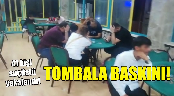 SONKALEİZMİR - İzmir İl Jandarma Komutanlığı'na bağlı ekipler Beşyol Mahallesi'nde İ.A isimli şahsa ait işletmede kumar oynandığı istihbaratı üzerine operasyon düzenledi. İşletmeye yapılan baskında 41 kişi tombala oynarken suçüstü yakalandı.