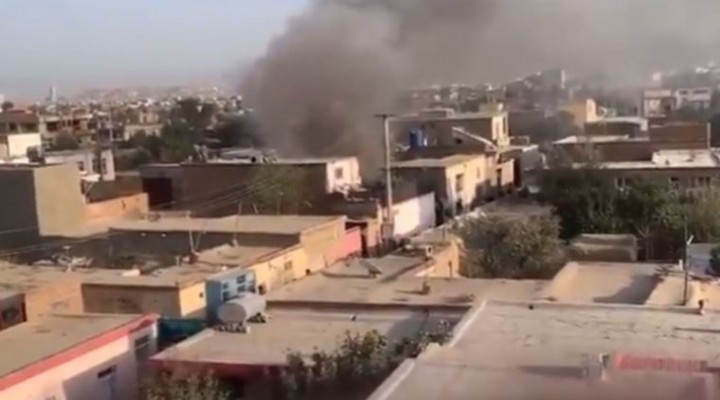 Afgan medya mensupları, Twitter'dan paylaştıkları görüntülerde, Kabil Havalimanı'nın batısındaki bir yerleşim yerine roket düştüğünü doğruladı.
