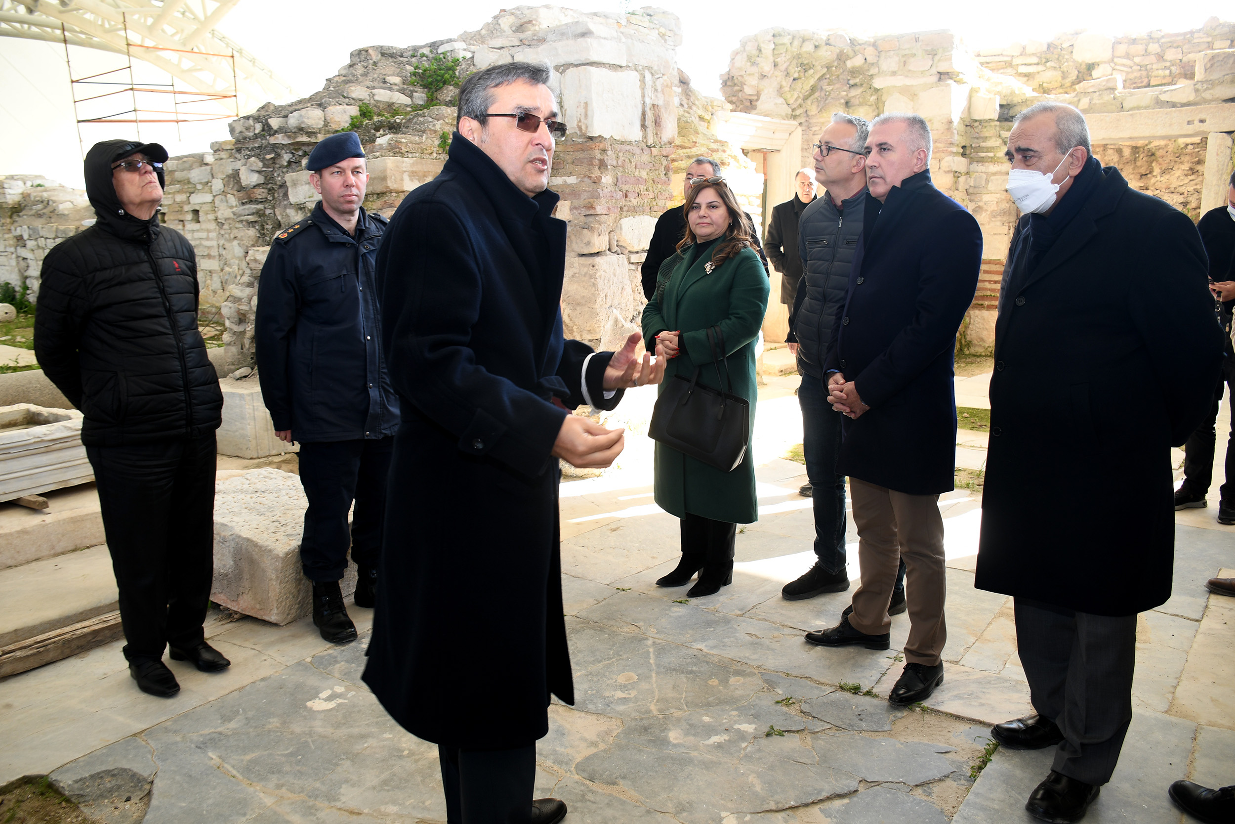 Kuşadası Kaymakamı Sadettin Yücel, Kuşadası Belediye Başkanı Ömer Günel ile birlikte Kuşadası Kaymakamlığı, Aydın Valiliği Yatırım İzleme ve Koordinasyon Başkanlığı (YİKOB), Kuşadası Belediyesi ile Güney Ege Kalkınma Ajansı (GEKA) iş birliğinde yürütülen “Türkiye Turizminde Yeni Bir Uğrak Yeri: Kuşadası Kadıkalesi/Anaia Liman Kalesi (Anıtsal Kilisenin Ziyaretçiye Açılması) Projesi” kapsamında yürütülen çalışmaları inceledi. Aydın Büyükşehir Belediyesi Denizcilik Daire Başkanı Barış Tarım, Kuşadası Belediye Başkan Yardımcısı Oğuzhan Turan, Kuşadası İlçe Emniyet Müdürü Mehmet Ali Berksoy, Kuşadası İlçe Jandarma Komutanı Mustafa Karagöz, Kuşadası Ticaret Odası Başkanı Serdar Akdoğan, Kuşadası Esnaf ve Sanatkârlar Odası Başkanı Ahmet Çalım, Kuşadası Şoförler ve Otomobilciler Esnaf Odası Başkanı Hüsnü Öten ve Aydın Turist Rehberleri Odası Başkanı Ozan Sayın’ın da yer aldığı inceleme gezisinde Kadıkalesi’nde yer alan anıtsal kilisenin ziyarete açılması için sürdürülen çalışmalarla ilgili olarak görüş alışverişinde bulunuldu.