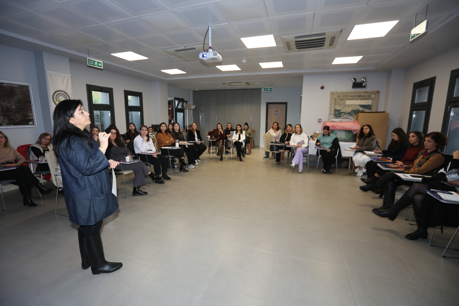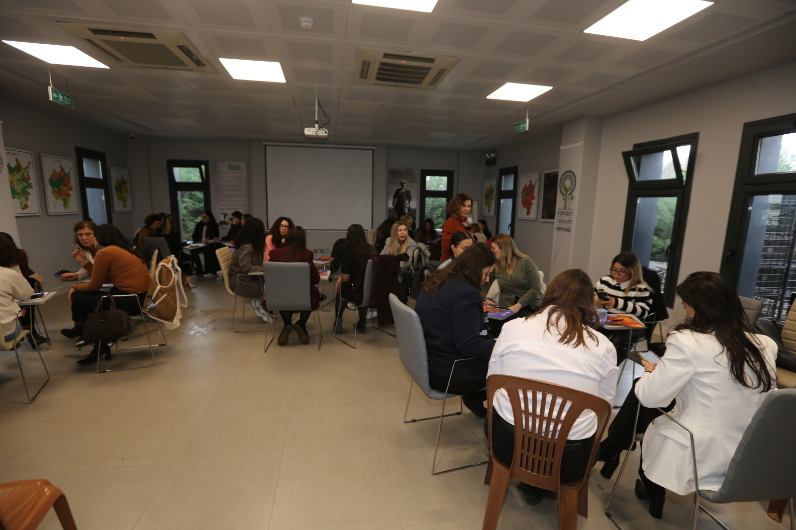 Kadın ve Aile Hizmetleri Müdürü Özgül Yavuz Karaalioğlu, Efes Selçuk Belediyesi’nin kadın ve çocuk odaklı çalışmalarını anlattığı bir sunum yaptı. Karaalioğlu; kadın el emeği gıda ürünleri ile yerel ve ulusal kadın kooperatiflerinin ürünlerinin satışının yapıldığı Efes Tarlası Bakkalı, kadınların el emeklerini gelire dönüştürebildikleri Efesium Hediyelik Eşya Dükkânı, kadınlara istihdam olanağı sunan çamaşırhane, kadınların ücretsiz olarak yararlanabildiği psikolojik ve hukuksal destek hizmetleri, gıda dayanışma paketleri ve birçok ödüllü proje hakkında bilgiler verdi. Ayrıca tarım işçisi kadınların çalışırken çocuklarını ücretsiz olarak emanet edebildikleri Deppo Efes Masal Evi ile belediye bünyesinde faaliyet gösteren diğer çocuk atölyelerini de aktardı.
