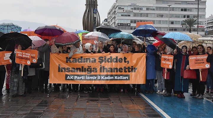 AK Partili kadınlar, 25 Kasım Kadına Yönelik Şiddetle Mücadele ve Uluslararası Dayanışma Günü nedeniyle Türkiye genelinde eş zamanlı olarak yürüyüş düzenledi. İzmir'de de AK Parti Kadın Kolları üyeleri, Cumhuriyet Meydanı'nda toplandı. Yağmura rağmen Cumhuriyet Meydanı'ndan Konak Meydanı'na yürüyen kadınlar, 'Kadına uzanan eller kırılsın', 'Kadına şiddete hayır' sloganları attı. 'Kadına şiddet insanlığa ihanettir' pankartı arkasında yürüyen kadınlara, zaman zaman erkekler de sloganlarla destek verdi.