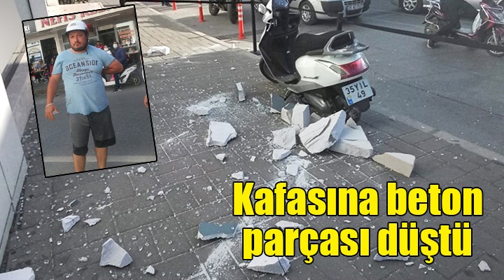 Alınan bilgiye göre, İzmir'in Ödemiş ilçesi Cumhuriyet Mahallesi Cumhuriyet Caddesi'nde Ufuk Özdere (39), 35 YIL 49 plakalı motosikletine bindiği sırada bir binadan kopan gaz beton parçası başına düştü. O sırada kaskı takılı olan Özdere, ağır yaralanmaktan kurtuldu. Durumun ihbar edilmesi üzerine olay yerine gelen sağlık ekipleri, Özdere'yi tedbir amaçlı Ödemiş Devlet Hastanesine kaldırdı.