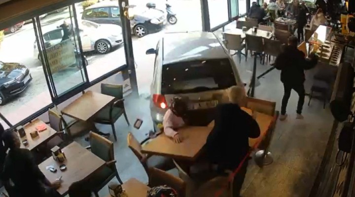 Kaza anı, kafenin güvenlik kamerası tarafından saniye saniye kaydedildi. Görüntülerde, geri manevra sırasında sürücünün direksiyon hakimiyetini kaybetmesiyle otomobilin kontrolden çıkıp kafeye girmesi görülüyor.