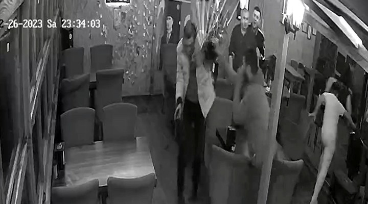 Tartışma sırasında Ersoy, belindeki tabancası çıkarırken Kazan da eline geçirdiği çöp kovasıyla başına vurdu. Kafeteryadaki bir kişi araya girip, kavgaya önlemeye çalışırken, diğer müşteriler panik halinde kaçtı.