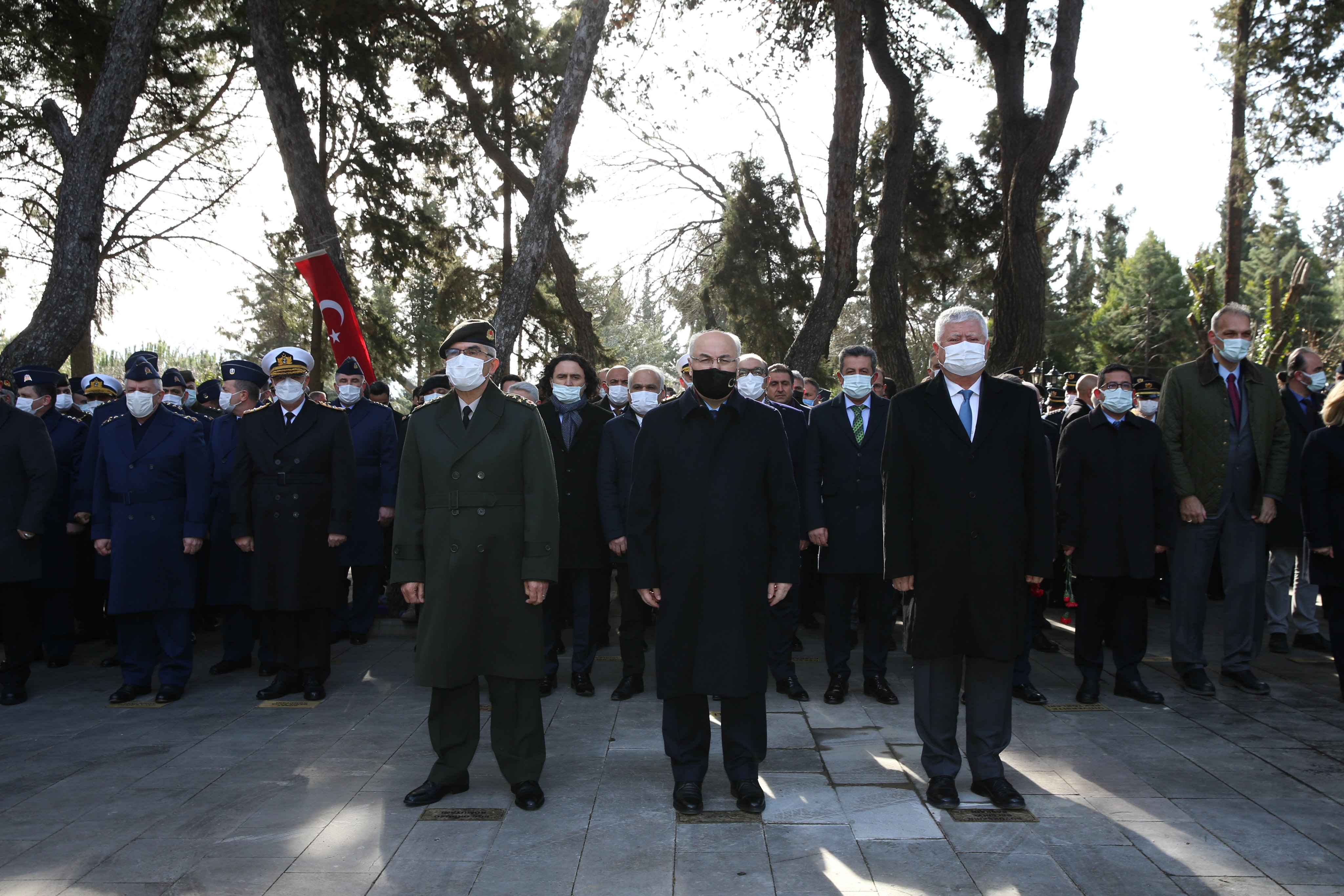 Şehitlikteki törene İzmir Valisi Yavuz Selim Köşger, Ege Ordusu ve Garnizon Komutanı Orgeneral Ali Sivri, İzmir Büyükşehir Belediye Başkan Vekili Mustafa Özuslu, protokol üyeleri katıldı.