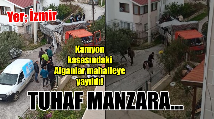SONKALEİZMİR- İzmir kıyılarından yasa dışı yollarla Yunanistan'a geçmeye çalışan kaçak sığınmacılar, bu kez mahalle ortasında ortaya çıktı. Olay, bugün saat 16.00 sıralarında, Karaburun'un İskele Mahallesi, Turgutreis Sokak'ta meydana geldi. Üzeri branda sarılı yüklü bir kamyon rampayı çıkmaya çalışırken, bir anda kontrolden çıktı. Geri geri kayan kamyon, büyük gürültüyle rampanın ağzındaki bir evin bahçe duvarına girdi. Duvarı yıkan kamyonun sürücüsünün ev sahiplerini "polis çağırmamaları" konusunda ikna etmeye çalıştığı sırada, sürpriz bir gelişme yaşandı. Kamyonun brandasını yırtan çok sayıda kaçak sığınmacının hızla etrafa dağıldığı görüldü. Bu manzara bazı yurttaşlar tarafından da cep telefonuyla kaydedildi.