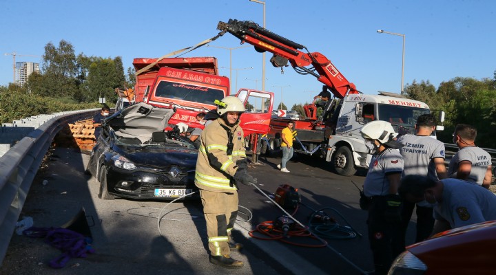 İzmir-Çeşme Otoyolu üzerinde seyreden tuğla yüklü sürücüsünü kimliği henüz tespit edilemeyen 45 TV 766 plakalı kamyon, Kadir Beycioğlu idaresindeki 35 KG 8049 plakalı otomobile çarptı.