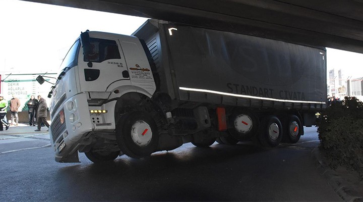 Bugün saat 13.00 sıralarında, Ş.A., kullandığı 35 HEA 58 plakalı cıvata yüklü kamyonuyla, yasak olmasına rağmen Halkapınar Aktarma İstasyonu'na girerek, dönüş yapmak istedi. Ancak Ş.A., aktarma istasyonundaki köprünün yüksekliğini hesaba katmadı. Kamyon köprüye sıkışıp, devrilme tehlikesi atlattı. Ş.A., kendi imkanları ile kamyonunu kurtaramadı. Bu sırada çevredekiler durumu polise bildirdi. Olay yerine gelen polis ekipleri, yolu trafiğe kapatıp, gerekli önlemleri aldıktan sonra, kamyonun kurtarılması için vinç çağırdı. Polis, kazayla ilgili soruşturma başlattı.