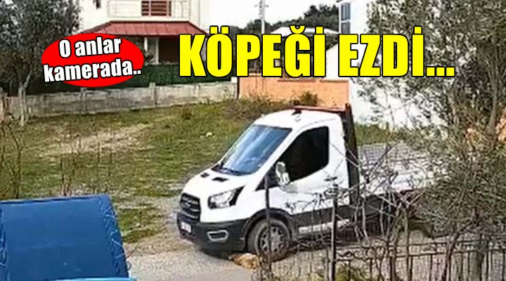 Görüntülerde, aracına giden İbrahim K.'nin yola baktığı, ardından kamyonetine bindiği ve harekete geçtikten bir süre sonra 'Meks'in üzerinden geçtiği yer alıyor. Meks tekerin altında kaldıktan sonra aracını durduran İbrahim K.'nin, inmeyip birkaç saniye bekledikten sonra yoluna devam ettiği görülüyor.