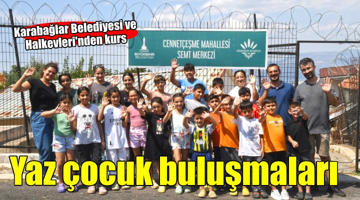 Çocuklardan büyük ilgi gören “Yaz Çocuk Buluşmaları” dersleri Karabağlar Belediyesi Cennetçeşme Semt Merkezi’nde yapılıyor. Bilimsel, laik ve eşit bir bakış açısıyla, hem eğlenmek, hem de öğrenmek amacıyla Halkevleri gönüllülerinin katılımıyla düzenlenen kurslarda çocuklara, Drama, Toplumsal Cinsiyet, Ritim, Müzik, Eğlenceli Bilim, Resim, Felsefe ve Çocuk Hakları dersleri veriliyor. Ayrıca çeşitli geziler yapılırken veliler için de resim, yoga ve yaratıcı drama kursları ücretsiz veriliyor.