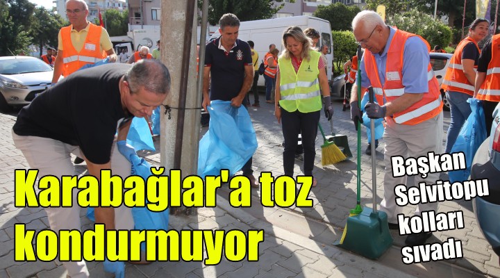 Etkinliğe katılan gönüllülerle birlikte eline süpürge ve faraşı alan Başkan Muhittin Selvitopu, sokakları süpürerek çalışmalara katkıda bulundu. Halkın dikkatini çekmek amacıyla böyle bir etkinlikte Fahrettin Altay Mahallesi'nde bir araya gelindiğini belirten Selvitopu, "Temizlik bir sosyal alışkanlık olduğu bir gerçek. Bu konuda Karabağlar'da yaşayan vatandaşlarımız çevremiz ve temizliği konusunda hassas davranırlarsa, herkes kendi kapısının önünü süpürürse kentimiz daha temiz olur. Karabağlarlı vatandaşlarımızın buna ilgi göstereceğine inanıyorum" diye konuştu. Ayrıca vatandaşlar bu duyarlı etkinlik için gönüllülere ve Başkan Selvitopu'na teşekkür ettiler.