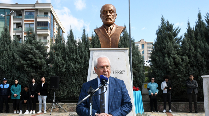 Büyük şairin büstünün de yer aldığı parktaki törene, Karabağlar Belediye Başkanı Muhittin Selvitopu, gazilerimiz, meclis üyeleri, muhtarlar, siyasi parti ve sivil toplum kuruluşlarının temsilcilerinin aralarında olduğu çok sayıda vatandaş katıldı.