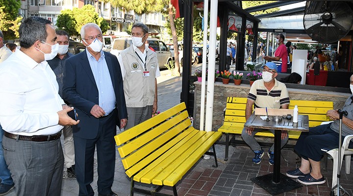 Karabağlar Kaymakamı Cemil Özgür Öneği ve Karabağlar Belediye Başkanı Muhittin Selvitopu, ilgili birim amirleriyle birlikte son olarak İnönü Caddesi’nin Hatay bölümünde denetim yaptı. Mahalle muhtarları, zabıta, ilçe emniyet, tarım ve orman müdürlüklerinden ekiplerin de katıldığı denetimde, esnaf ve vatandaşlardan maske, mesafe ve hijyen kurallarına uyulması istendi. Çeşme Durağı’ndan Hakimevleri’ne kadar süren denetimde Kaymakam Öneği ve Başkan Selvitopu, başta gıda üretimi ve satışı yapanlar olmak üzere farklı iş kollarında çalışan esnafı ziyaret etti. Kafe ve restoranlardaki masalarda oturanların sosyal mesafe kurallarına uymaları istendi.