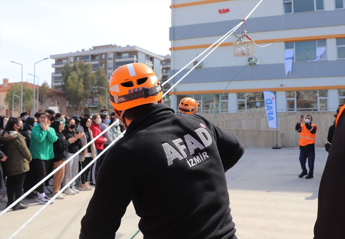 AFAD ekipleri ve Karabağlar Kaymakamlığı işbirliğiyle Naci Şensoy Anadolu Lisesi'nde yapılan tatbikata öğrenci ve öğretmenler de katıldı.