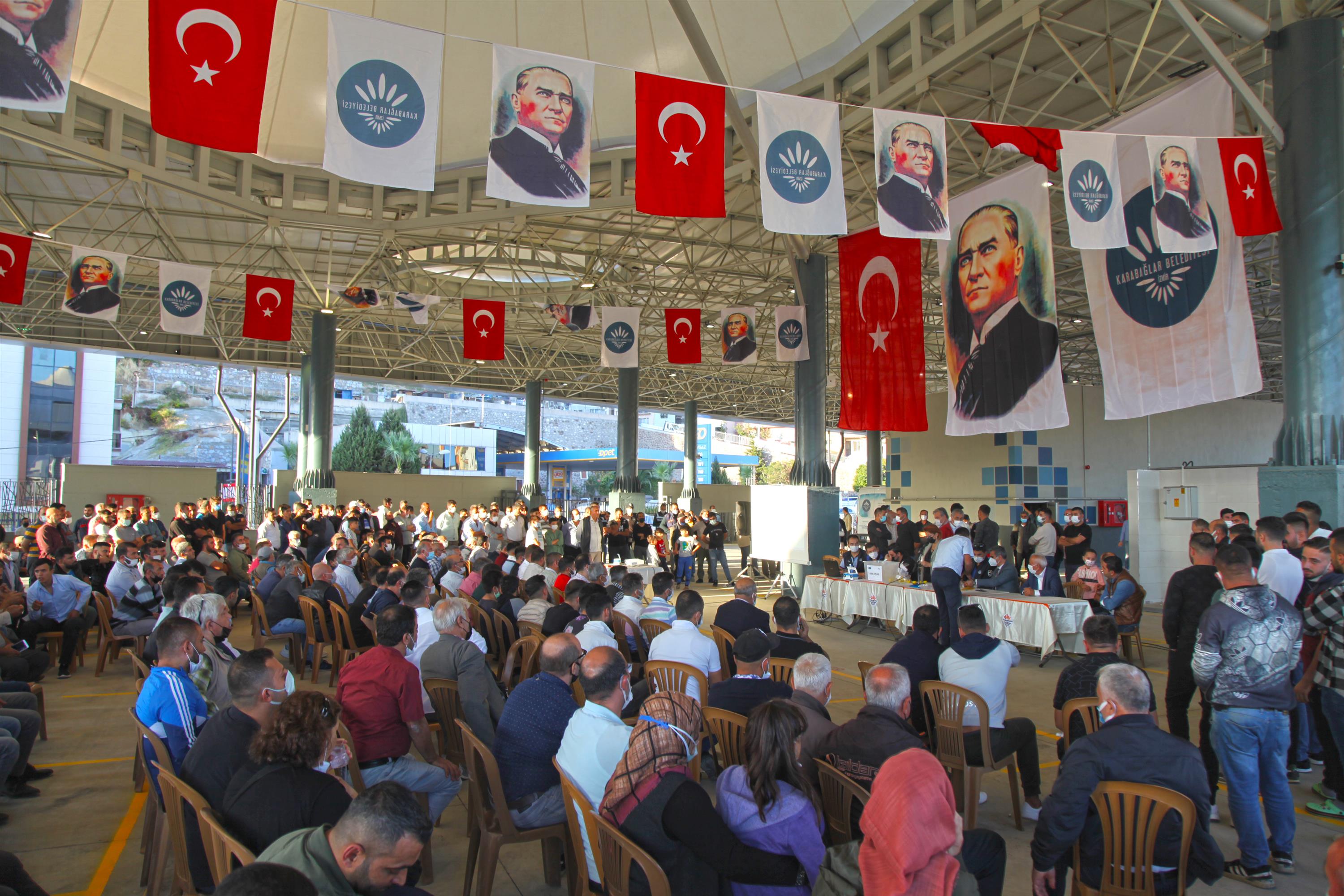 Aynı tesiste noter huzurunda gerçekleştirilen kura çekimine, başvuruda bulunan 579 pazarcı esnafının yanı sıra, Karabağlar Belediyesi Başkan Yardımcısı Yaşar Güven Güngörmüş ve İzmir Pazarcılar Odası Başkanı Hamdin Erişen de katıldı. Kura çekimi Pazaryerleri Yönetmeliği'ne uygun olarak gerçekleştirildi.