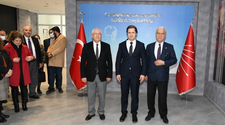 Heyet, CHP İzmir İl Başkanı Deniz Yücel ve il yönetim kurulu üyeleri tarafından karşılandı. Yücel, Başkan Selvitopu, İlçe Başkanı Türkbay ve konuklara yeni il binasını gezdirdi.