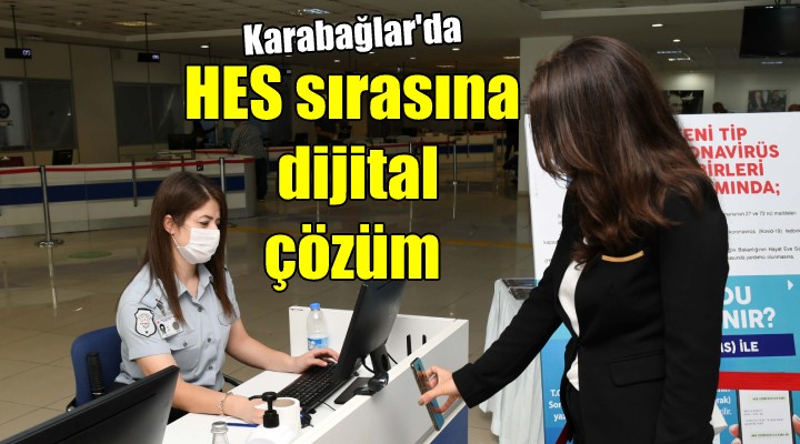 Karabağlar Belediyesi son olarak, vatandaşların bina girişinde daha az beklemesini sağlamak amacıyla HES kodu sorgulamasıyla ilgili dijital altyapı hizmetini sundu. Bu kapsamda Bilgi İşlem Müdürlüğü’nün belediye olanaklarıyla donanımını hazırladığı ve bakanlık sistemine uyarladığı dijital ekran, ana hizmet binası girişine yerleştirildi. Sağlık Bakanlığı’nın Hayat Eve Sığar uygulamasını cep telefonlarına indiren vatandaşlar, bu uygulamadaki karekodu dijital ekrana okutarak, riskli olup olmadıklarını anında öğrenebiliyor. Aynı anda ekranı takip eden belediye güvenlik görevlileri de, sonuca göre vatandaşların binaya girişine izin veriyor. Riskli durumdaki vatandaşlar binaya alınmıyor. Ayrıca cep telefonu olmayan vatandaşların da HES kodu almalarına yardımcı olunuyor.