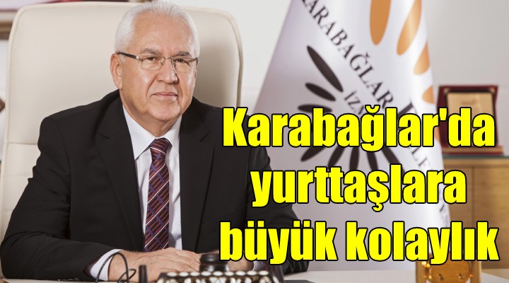 Hizmetlerden yararlanmak isteyen vatandaşlar, “www.karabaglar.bel.tr” adresindeki “e-belediye” linkine tıkladıktan sonra “e-devlet ile giriş” seçeneğini tıklayarak, e-devlet giriş şifreleriyle bu hizmetlere ulaşabilecekler. Böylece e-devlet şifresi olan vatandaşların belediye sistemine üye olmalarına gerek kalmayacak.