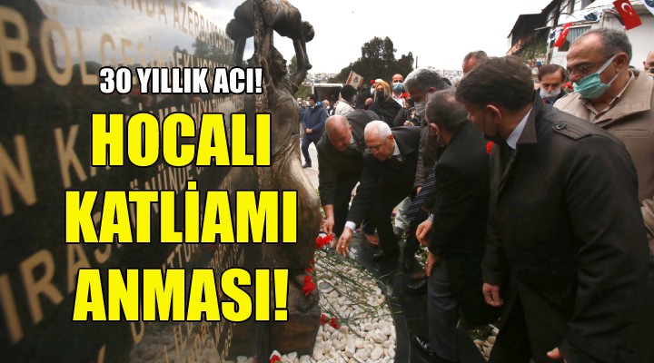 Karabağlar Belediyesi’yle Azerbaycan Türkleri ve Dost Dernekler Federasyonu tarafından Salih Omurtak Mahallesi’ndeki Hocalı Anıtı önünde düzenlenen törene, Karabağlar Belediye Başkanı Muhittin Selvitopu, CHP İl Başkan Yardımcısı Çetin Özdemir, CHP'nin İlçe Başkanı Mehmet Türkbay, Eski İlçe Başkanı Ali İhsan Yıldız, Saadet Partisi İlçe Başkanı Eymen Ünalan, DEVA Partisi İlçe Başkanı Abdullah Kaya, İzmir Büyükşehir Belediye Meclisi Üyesi Atilla Baysak'ın da aralarında olduğu siyasi parti temsilcileri, Karabağlar Kent Konseyi Başkanı Alev Ağrı, Azerbaycan dernekleri ve sivil toplum kuruluşlarının yöneticileri ve üyeleri, meclis üyeleri, muhtarlar ve vatandaşlar katıldı.