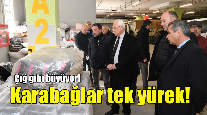 Karabağlar Belediye Başkanı Muhittin Selvitopu, Kibar Belediye Hizmet Kompleksi otoparkında oluşturulan koordinasyon merkezine giderek, çalışmaları denetledi ve ekipleri yönlendirdi. Başkan yardımcılarından ve belediye bürokratlarından bilgi alan Başkan Selvitopu, Karabağlar'ın depremzedeler için tek yürek halinde hareket ettiğini söyledi. Yardım kampanyasına ilk saatlerden itibaren destek gelmeye başladığını ve zaman ilerledikçe bunun çığ gibi büyüdüğünü belirten Başkan Selvitopu, “Her zaman olduğu gibi bu zor günleri de dayanışmayla atlatacağız. Duyarlılık gösteren tüm vatandaşlarımıza teşekkür ediyorum. Karabağlar Belediyesi olarak biz de İzmir Büyükşehir Belediyesi ve afet bölgesiyle sürekli iletişim halindeyiz. Koordineli şekilde hareket edeceğiz. Bölgenin ihtiyaçlarına göre desteklerimiz artarak sürecek” dedi.