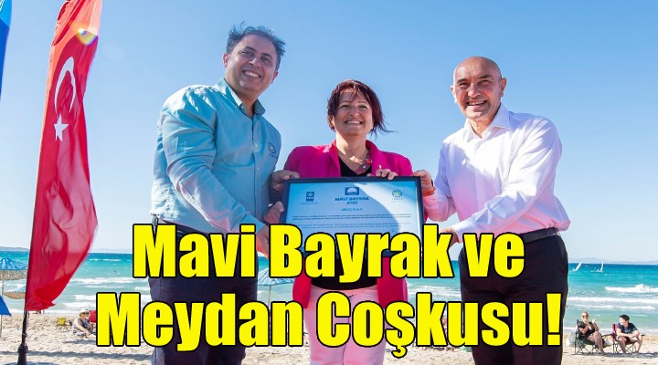 Konuşmaların ardından Yarımada Yelken Şampiyonu Egehan Özkula ve yüzücüler tarafından denizden getirilen mavi bayrak ve mavi bayrak sertifikası, Türkiye Çevre Eğitim Vakfı (TÜRÇEV) İzmir ve Kuzey Ege Koordinatörü Doğan Karataş tarafından Erdoğan ve Soyer’e takdim edildi.