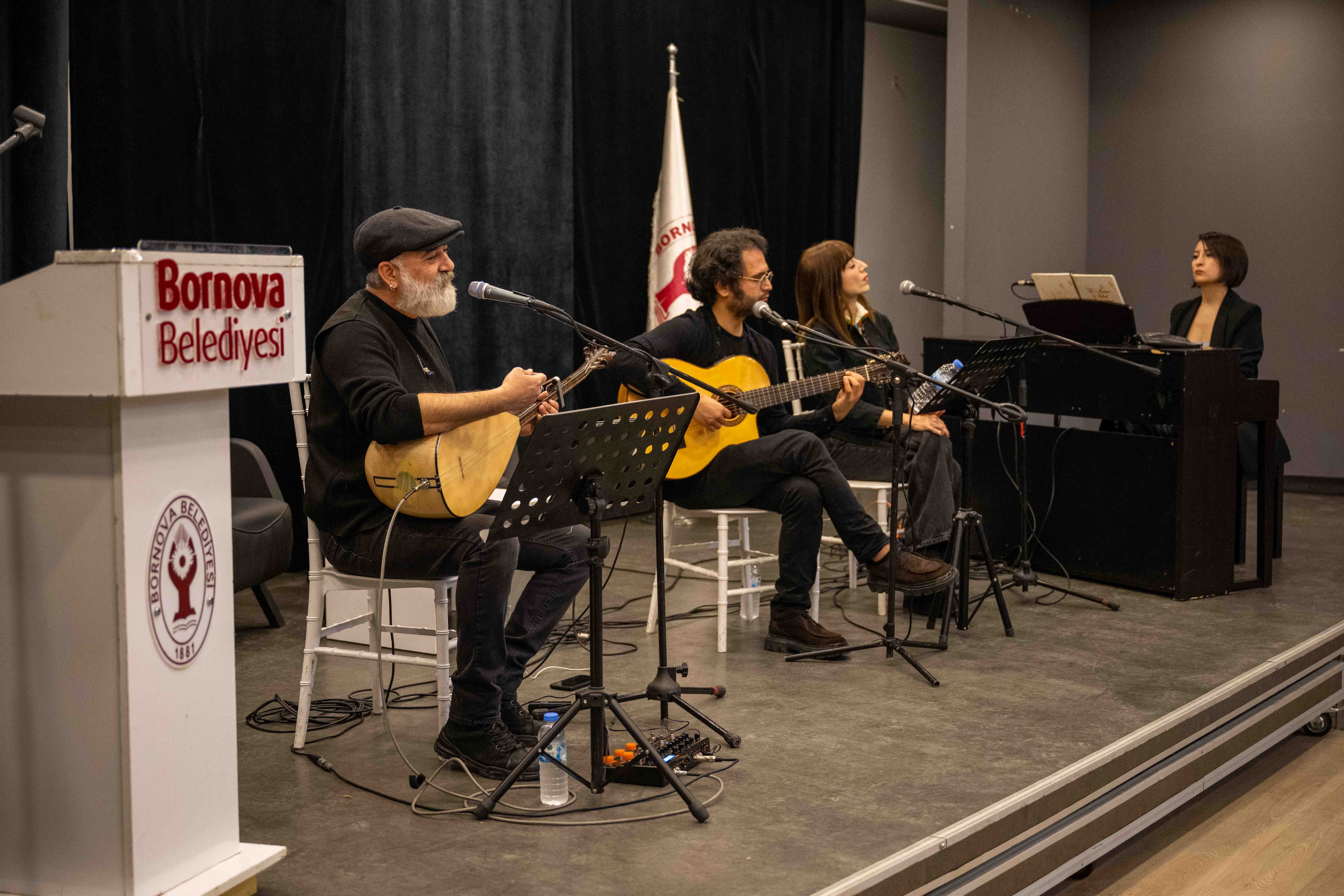 Etkinlik, Bornova Belediyesi müzik eğitmenlerinden oluşan Grup İlyada’nın seslendirdiği şarkılarla daha da anlam kazandı. Müzik dinletisi, söyleşinin duygu yoğunluğunu pekiştirerek katılımcılara unutulmaz bir akşam yaşattı.