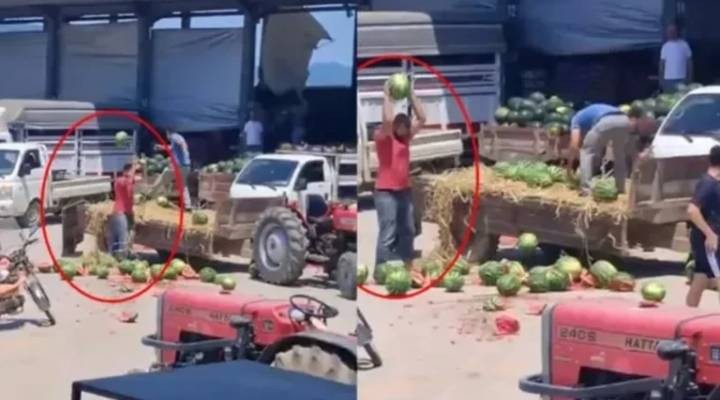 Sakarya'nın Geyve ilçesi Safibey Ürün Toplama Merkezi'nde 13 Temmuz'da saat 13.30 sıralarında meydana gelen olayda; üretici S.Ç. ile yanındaki S.E., anlaşmalı oldukları toptancı son anda alımdan vazgeçince satmak istedikleri karpuzları yere atıp parçaladı.