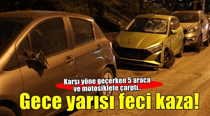 Kaza, saat 22.00 sıralarında İnönü Caddesi’nde meydana geldi. İddiaya göre, kimliği öğrenilmeyen sürücünün kullandığı 35 CBN 029 plakalı otomobil, kontrolden çıktı. Sürücüsünün direksiyon hakimiyetini kaybettiği otomobil karşı yönden gelen S.G., idaresindeki 35 CVZ 010 plakalı motosiklete çarptı. Motosiklet sürücüsü kazanın şiddetiyle park halindeki bir aracın üzerine savrulurken, otomobil ise park halindeki 5 araca daha çarparak durabildi.