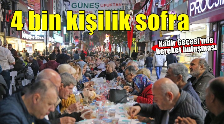 Ramazan ayı boyunca Karşıyaka’nın farklı mahallelerinde iftar sofraları kurarak dayanışmayı büyüten Karşıyaka Belediyesi, Kadir Gecesi’nde Karşıyaka Çarşısı’nda büyük bir organizasyona imza attı. Kurulan dev sofrada 4 bin kişi bir araya gelerek Ramazan’ın bereketini paylaştı. Karşıyaka Belediye Başkanı Yıldız Ünsal’ın ev sahipliğinde gerçekleşen iftar programına; Belediye Meclisi üyeleri, Cumhuriyet Halk Partisi Karşıyaka İlçe Başkanı Levent Güçlü ve yönetim kurulu üyeleri, Karşıyaka Kent Konseyi Başkanı Dilek Karcı ve yürütme kurulu üyeleri, mahalle muhtarları ile vatandaşlar katıldı. İftar öncesinde Mustafa Kemal Paşa Camii İmamı Şuayip Coşkun tarafından ezan okundu ve dualar edildi. Ardından, binlerce Karşıyakalı hep birlikte oruçlarını açarak dayanışma ruhunu pekiştirdi.