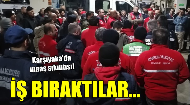 SONKALEİZMİR-Karşıyaka Belediyesi şirketlerinden Kent AŞ. ile Personel AŞ.'de görevli işçilerin bir bölümü maaşlarını alamadıkları gerekçesiyle iş bıraktı. Temizlik işçilerinin dün başlattığı eylem dün akşam ve bugün şantiyede görevli personelle devam etti.