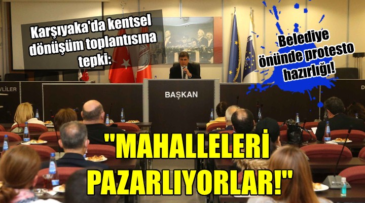 SONKALEİZMİR-Karşıyaka Belediye Başkanı Cemil Tugay, Başkan Yardımcısı Şehir Plancısı Zeki Yıldırım, Proje Yöneticisi Mimar Rafet Yacan ile toplam 38 mimar, harita, makine, elektrik ve inşaat mühendisinin katılımıyla gerçekleştirilen kentsel dönüşüm toplantısına tepki geldi. Belediyede yapılan toplantıya, yeni imar planlarının uygulanacağı Cumhuriyet ve İnönü Mahallesi'nden kimsenin davet edilmediğini belirten Cumhuriyet Mahallesi Muhtarı Özay Dağhan, "Böyle bir toplantıya en azından bölge halkından birkaç temsilci çağırılabilirdi. Ancak onların amacı farklı. Toplantıda mahalleleri pazarladıkları kişiler var. Oradakiler Başkan Cemil Tugay'ın işbirliği yaptığı müteahhitlerin adamlarıdır" dedi.