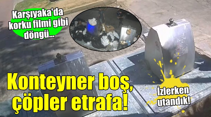 Görüntülerde sabah saatlerinde başlayan çöp atımlarının günün ilerleyen saatlerinde yanlış kullanım nedeniyle bacağı tıkanan konteyner yerine etrafa atıldığı görülüyor.