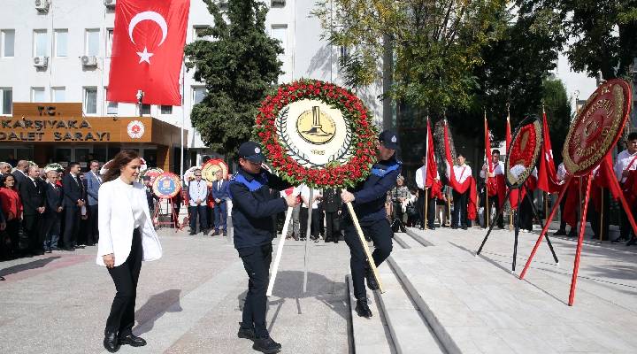 Törende konuşan Karşıyaka Belediye Başkanı Yıldız Ünsal “29 Ekim 1923’te ilan edilen Cumhuriyet, sadece bir rejim değişikliği değil; aynı zamanda bir halkın ayağa kalkışı, eşit yurttaşlık hakkını kazanışı, özgürlük ve çağdaşlık yolunda attığı en büyük adımdır. Bugün, bu büyük mirasın 102. yılındayız. Ama Cumhuriyet sadece geçmişin bir hatırası değil; geleceğin de teminatıdır. Onu korumak, yaşatmak ve daha ileriye taşımak hepimizin görevidir. Karşıyaka olarak biz, Cumhuriyet değerlerine sıkı sıkıya bağlı bir kentiz. Kadınların özgürce yaşadığı, gençlerin fikirlerini ifade edebildiği, çocukların eşit fırsatlarla büyüdüğü bir Karşıyaka için gece gündüz çalışıyoruz. Cumhuriyetimizin 102. yılı kutlu olsun. Yaşasın halkın iradesi… Yaşasın Cumhuriyet, Yaşasın Mustafa Kemal Atatürk” dedi.