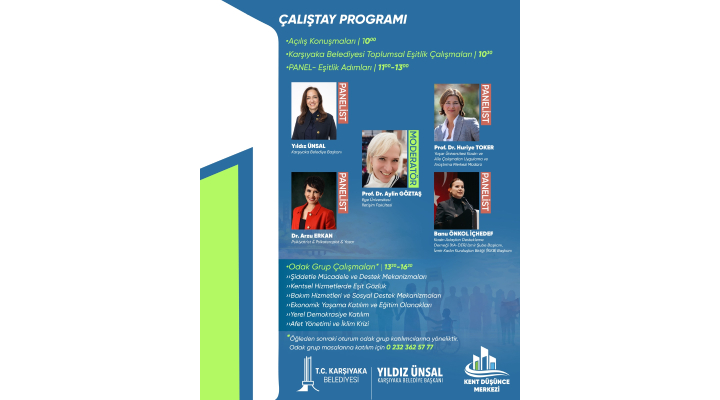 Çalıştayın öğleden sonraki oturumunda ise ‘Şiddetle Mücadele ve Destek Adımları’, ‘Kentsel Hizmetlerde Eşit Gözlük’, ‘Ekonomik Yaşama Katılım ve Eğitim Olanakları’ gibi başlıklarda 6 ayrı odak grup çalışması gerçekleştirilecek. Tüm vatandaşların katılımına açık olan çalıştayda, odak grup masalarına katılım için 0232 362 57 77 numaralı telefondan kayıt yaptırılabilecek.
